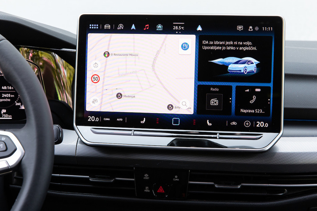 klopi že malce stiskali. Da je najnovejši golf predan udobju, se, vsaj v blagohibridni izvedbi s sredine ponudbe, hitro pokaže tudi med vožnjo. Podvozje je čvrsto, a vseeno malce mehkejše, kot bi pričakovali. Zato zelo dobro blaži udarce pri vožnji čez neravnine, a ne vabi ravno k dinamični vožnji. Volan je natančen, vendar bi lahko bil bolj komunikativen.