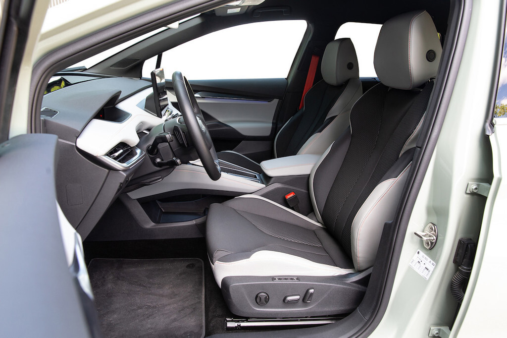 Prav nič nenavadnega ni, da so si hišni modeli določenih proizvajalcev med seboj zelo podobni. To še kako velja za tokrat preizkušeni elroq, ki je oblikovno zelo podoben večjemu enyaqu. Še najbolj spredaj. Sicer velja omeniti, da se enyaq, ki je ob prenovi dobil sprednji del tech deck face, zgleduje po elroqu in ne obratno. A to niti ni pomembno, saj gre za nov hišni slog, s katerim bodo že v bližnji prihodnosti prežeti tudi drugi Škodini modeli, glede ostalega pa je elroq tisti, ki ponosno posnema starejšega brata. Podobnost je očitna tudi zadaj, medtem ko pogled od strani odkrije, da je elroq krajši. Gre za 17 centimetrov razlike, ki pa se tiče le zadka, saj imata enako medosno razdaljo, ki znaša 2,77 metra. To pomeni, da tudi elroq ponuja zelo prostorno kabino s skoraj enakim položajem sedenja kot enyaq in radodarno odmerjenim prostorom za noge v drugi vrsti.