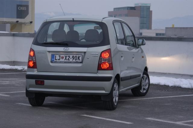 Za atosa vemo že od prej, da je najmanjši model znamke Hyundai, da je hkrati najcenejši in potemtakem v najnižjem cenovnem razredu. Pred kratkim je ta romantika dobila epilog. Prenovili so ga. Želja je bila, da bi še bolj ugajal kupcem, kar bo, roko na srce, zavoljo celovite prenove veliko lažje. Prvo, kar opazite na njem, je na novo zlikana zunanjost. Očitnejša maska se postavlja ob bok ostalim modelom južnokorejskega proizvajalca. Popolna družina. Kompaktne mere se spredaj začenjajo z zašiljenim nosom, kjer se skriva tudi prenovljen motor. Zadek je stičišče dveh ravnin, ki sta skorajda navpično nad zadnjo premo. Ideja, da bi v notranjosti ponudili čimveč prostora, se je obnesla tudi po zaslugi popolnoma v kot potisnjenih koles. Notranjost je zmes tekstila in plastičnih mas. Tako velja za armaturno ploščo, kjer je na sredini števec hitrosti in še dva manjša števca za nivo bencinskega goriva ter temperaturo hladilne tekočine za motor. Povsem dovolj. Štirikraki volan v sebi skriva zračno vrečo, pred sopotnikom pa je ta dobavljiva standardno pri opremi GLS. Predvidene so tudi nekatere zmečkljive cone, Atos ima tudi bočne ojačitve. A te so iz težkega in ne tako trdnega železa, kot to velja za jeklene legure pri konkurenci. Varnostni pasovi so opremljeni s pirotehničnimi zategovalniki, pred radovednimi pogledi prtljažni prostor ščiti polica, pred dolgimi prsti pa centralna ključavnica.