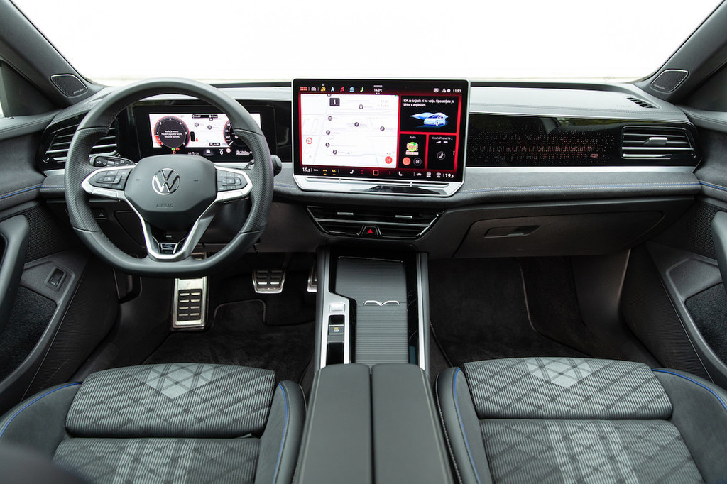 manj, v sklopu predalov med sedežema je tudi zelo učinkovita in brezhibno delujoča blazinica za brezžično polnjenje telefona. Tu je več prostora tudi zahvaljujoč prestavni ročici, ki je svoje mesto našla na desni strani ob volanu – priročno in funkcionalno, žal pa passat zato nima klasične ročice brisalcev, temveč te vklopite z nerodnim stikalom na levi ročici (manj vešč voznik zato mimogrede pomotoma vklaplja še smernik …). Prav tako, ali pa še bolj, so nerodni drsniki za uravnavanje