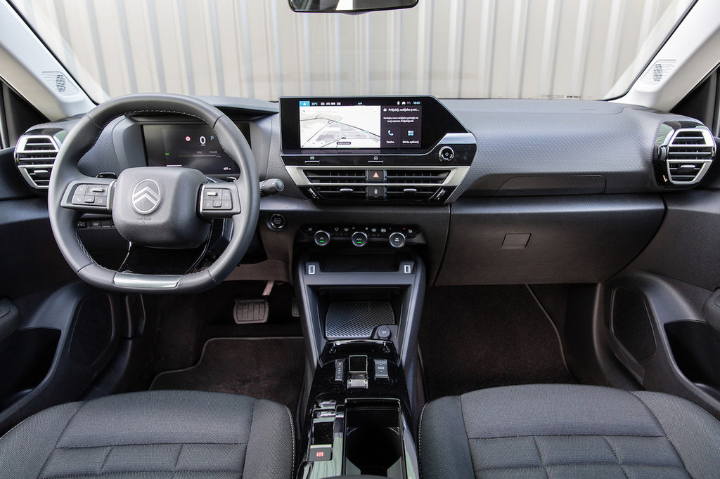 prekoračitev hitrosti, pomočnik za vožnjo po svojem pasu) lahko prek namenskega stikala preprosto prilagodite svojim željam oziroma jih izklopite. K dobri ergonomiji svoje dodajajo trije veliki okrogli gumbi in dodatna stikala za upravljanje klimatske naprave, tudi glasnost radia upravljate analogno – z vrtljivim gumbom, kar je precej bolj praktično od tekmecev, ki imajo v ta namen na dotik občutljive drsnike ali pa v njih omenjene funkcije upravljate prek osrednjega zaslona. Ta pri C4 meri