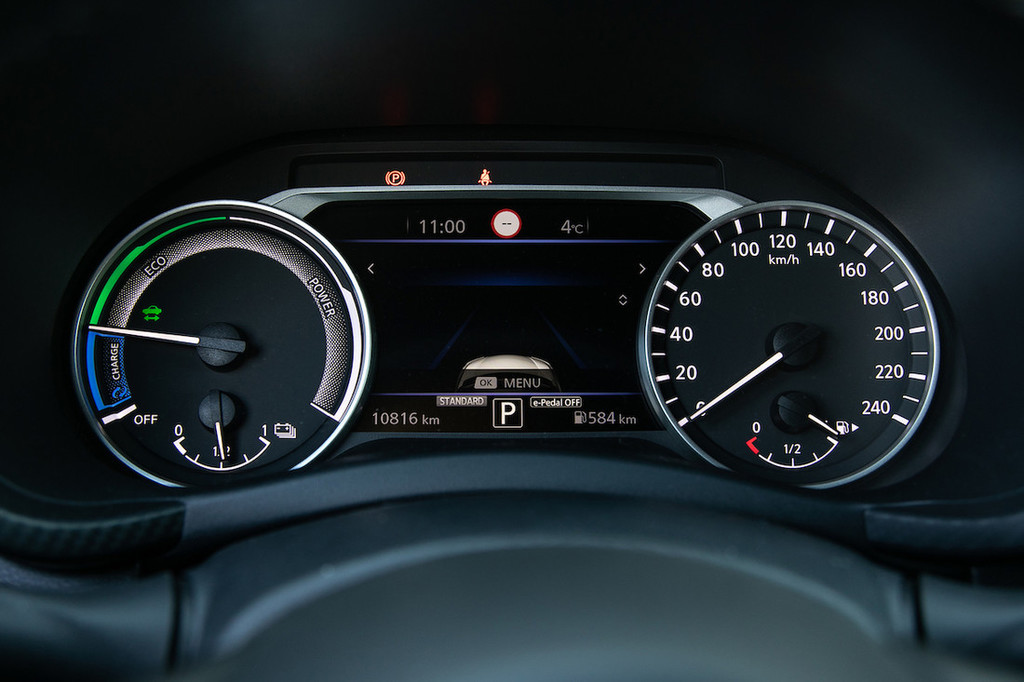 razlik. Poleg tega je na voljo funkcija e-pedal, ki naj bi s poudarjenim regenerativnim zaviranjem omogočala vožnjo le z uporabo pedala za plin, pri čemer smo se ji izogibali, saj avtomobila nikoli ne ustavi do konca in zahteva dodatno pozornost. Ob naštetem ugotavljamo, da je hibridni juke ustvarjen za mestno in primestno uporabo. Tam namreč omogoča najbolj prijetno vožnjo in največje prihranke pri porabi goriva, pri čemer nismo prepričani, ali lahko to odtehta 3.200 evrov cenovnega