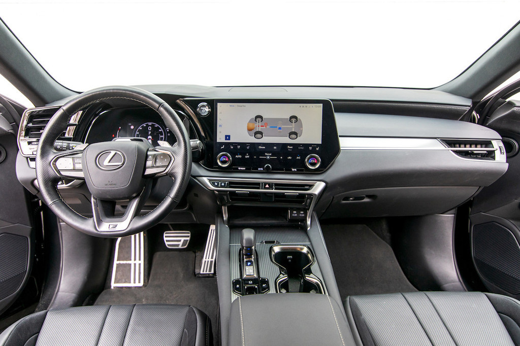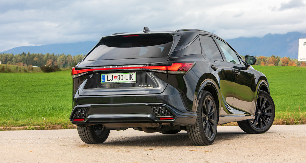 Tako nekako bi lahko opisali tudi pogonski sklop najzmogljivejšega modela RX v ponudbi. To je prvi turbo hibridni lexus, kjer sta enako impresivna oba dela njegovega pogona. Osnova je torej prisilno polnjen 2,4-litrski bencinski štirivaljnik, delo pa mu močno lajšata kar dva elektromotorja. Dodaten e-motor je namreč nameščen na zadnjo os, s čimer zagotavlja učinkovit štirikolesni pogon. Kombinirana moč vseh treh motorjev znaša 273 kW (371 KM), kar je dovolj za pospešek do stotice v 6,2