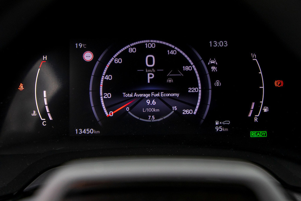 sprednjih, pri višji hitrosti pa za stabilnost v enako smer). Zmogljivostim hibridnega pogona je primerna poraba goriva, ki je s povprečjem okoli devetih litrov le malenkost nad realno ravnjo, primerljivo z zmogljivimi dizelskimi stroji.