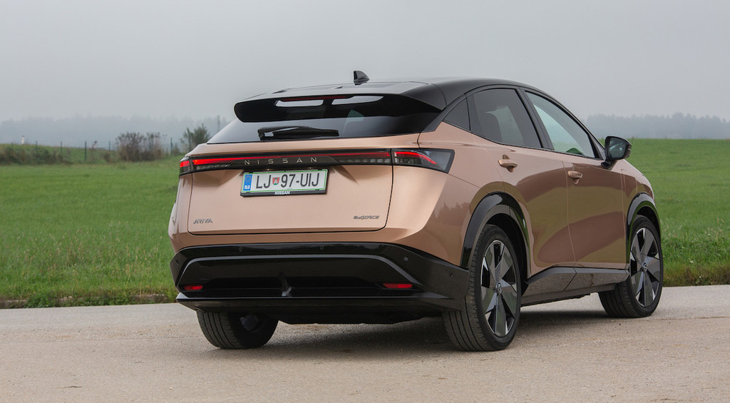 Nissan je nedvomno bil eden od pionirjev na področju električnih avtomobilov, a žal so le ti do zdaj na slovenski trg prihajali z nekaj zamude. To velja tudi za ariyo, ki so jo Japonci predstavili pred štirimi leti, v naše kraje pa je zapeljala šele pred nekaj meseci. Kljub temu bi težko rekli, da ni videti sodobno. Zahvaljujoč gladkim površinam, ki ji zagotavljajo aerodnamičnost, je kar malce futuristična, s kombinacijo bakrene in bleščeče črne barve pa tudi precej elegantna.