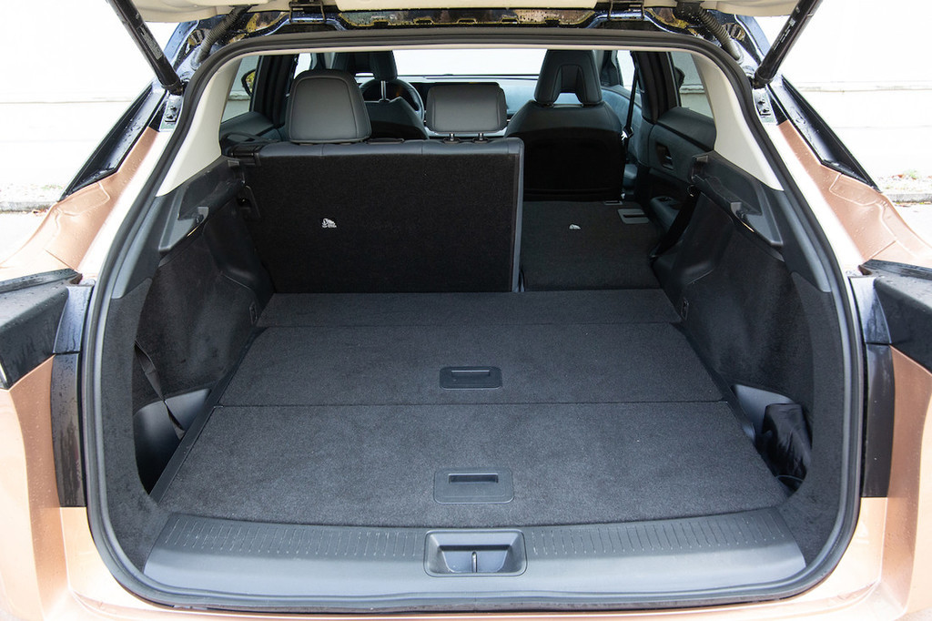 Električni SUV pa zato bolj prepriča med vožnjo. Najprej zaradi konkretne zaloge moči in navora, ki jo zagotavljata dva elektromotorja. Gre za 225 kW (306 KM) in 600 Nm, ki so na voljo takoj in s čimer je stotica dosegljiva v 5,7 sekunde. Prepriča pa tudi z uglajenostjo. V kabini je vedno prijetno tiho, svoje delo dobro opravlja tudi vzmetenje, saj se v notranjost prenaša le malo tresljajev. Kljub temu se avtomobil v zavojih ne nagiba preveč in daje dober občutek nadzora. Za to je med drugim