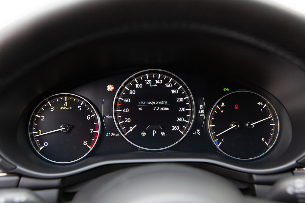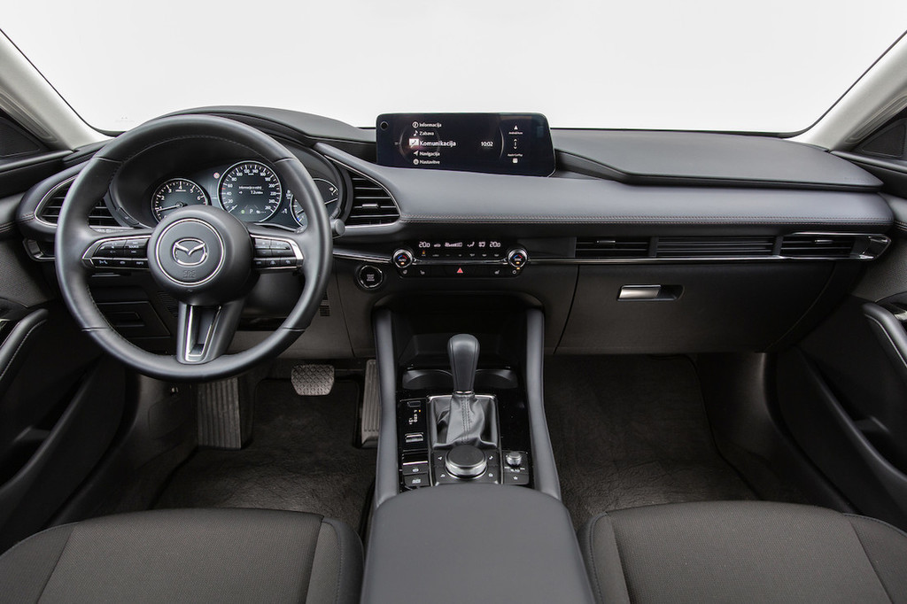 Seveda ima atmosferski motor tudi ob takšni prostornini svoje danosti in ob priganjanju ne ponuja turbo sunka, ampak zmerno pospeševanje ob vse večjem tuljenju motorja. A e-skyactiv G140 je vstopni motor, namenjen zmernim voznikom. V prid varčnosti je motor podprt s 24-voltno blagohibridno tehnologijo, za povrh pa še z možnostjo samodejnega izklopa dveh valjev. Tega med vožnjo nismo zaznali, saj se to zgodi le v trenutkih majhne obremenitve, za gladke prehode v primeru hipne potrebe po večji zmogljivosti pa tako ali tako skrbi majhen elektromotor. Prihranki pri porabi v primerjavi z dvolitrskim strojem niso ogromni, a smo razliko vseeno zaznali tudi na našem testu, ko smo z različico s samodejnim menjalnikom zabeležili približno tri decilitre nižje povprečje kot pri limuzinski izvedbi G122 z ročnim menjalnikom pred letom in pol.