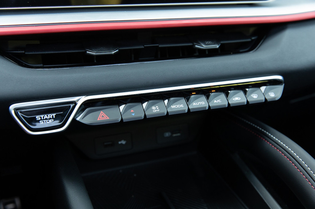 Vsa druga oprema je enako bogata, vključno z dobršnim naborom varnostnih sistemov in pripomočkov (aktivni tempomat je v gostejšem prometu žal neuporaben, saj je preveč zaletav), dvobarvnim oblazinjenjem iz umetnega usnja (v vročih poletnih dneh se hrbet kar pošteno poti), velikim strešnim oknom in sistemom kamer za pogled okoli vozila ter nad njim. Infotainment z ostro grafiko zaslona je precej skromnih funkcij in predvsem zmogljivosti – brez radia DAB, poleg bluetootha ima le (žično) applovo