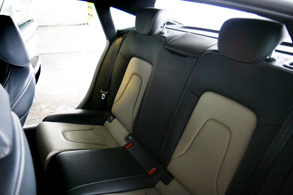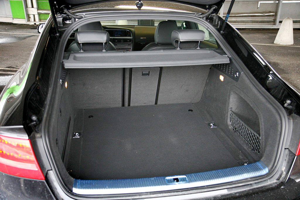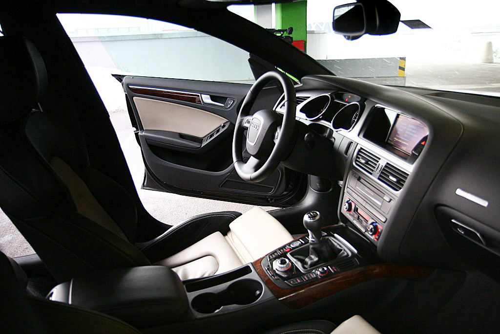 Notranjost ni nič kaj drugačna kot v ostalih Audijih; uporabljeni materiali so kakovostni in obdelani z nemško natančnostjo. In glede na to, da je sportback narejen na osnovi audija A4, se ne gre pritoževati niti nad ponujenim prostorom. Pozna se sicer, da je za skoraj štiri centimetre nižji od limuzine, saj se tukaj malo težje vstopa v notranjost, tako ali tako pa je A5 namenjen mlajšim kupcem od A4. Sedeži so štirje in glede na dolžino avtomobila bi vseeno lahko bilo več prostora tudi na zadnjih. Spredaj ga je sicer res v izobilju, zadaj pa imajo lahko nadpovprečno visoki hitro kakšno buško na glavi. Verjetno vas najbolj zanima prostor v prtljažniku. Tukaj spet pride do izraza osnova A4. Sportbackov prtljažnik namreč ponuja do litra enako prostornino kot njegov, vsaj po imenu, manjši bratec - 480 litrov. Zaradi kupejevske strehe in posledično majhnega zadnjega stekla je nekaj slabši pregled nad zadkom vozila, sicer pa si notranjost zasluži same pohvale. Še posebej intuitivna razporeditev ukaznih gumbov in sama vozna ergonomija, ki je res na zavidljivo visokem nivoju.