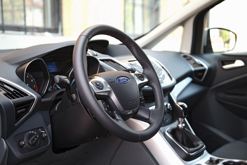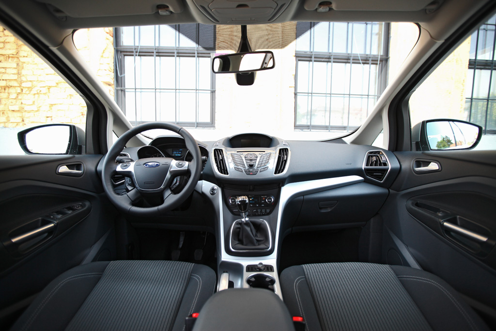 Kljub temu mu pri obliki ne moremo ničesar očitati. Z novo generacijo je bil tudi C-max podvržen hišnemu kinetičnemu dizajnu, z modernejšo obliko so si tako razširili krog kupcev. Dvomi, da je Ford znamka le za 'gastarbajterje', ki potujejo iz Turčije v Nemčijo in obratno, pa so še lepše ovrženi. Še več dinamike so si snovalci dovolili v samem kokpitu. Sredinska konzola je povzeta po malčici fiesti in tu se poraja dvom o ustreznosti izbire. Ker dotični avtomobil, poleg mladih družin in rekreativcev, cilja tudi na zrelejše voznike. A vse to je stvar okusa, bolj moteča je sama izdelava notranjosti.