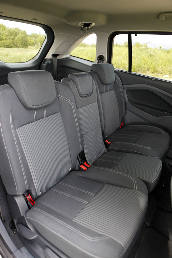 Plastika je že na solidnem nivoju, končna obdelava pa še vedno šepa na kakšnih mestih. Tega na primer pesti zelo glasen čriček v desnih bočnih vratih, kar je verjetno posledica neprimerne uporabe vrat nekoga pred nami. Sedišča za voznikom in sovoznikom so precej dvignjena glede na sedišči spredaj, kar bo potnikom omogočalo dober razgled iz vozila. Šesti in sedmi sedež sta kot navadno bolj zasilne narave, se pa lično zložita v ravno dno, zato ju ni treba odstranjevati iz vozila. V garaži tako ne delata navlake in sta pri roki vedno, ko ju potrebujete. Prav vsem Fordom in tudi temu zamerim pretanek volanski obroč. Hote ali nehote so nas vozila iz te tovarne razvadila s svojimi odličnimi voznimi lastnostmi, zato to dejstvo izpostavljamo in upamo na izboljšanje.