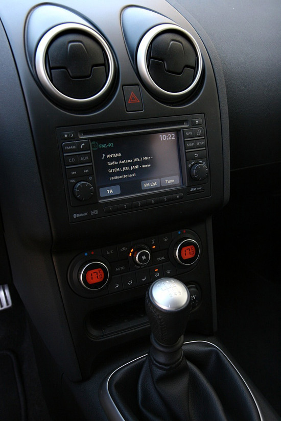 Namestitev za volanom ostaja enaka kot prej, kar lahko berete 'zelo dobra za kupce tovrstnih vozil'. Sedi se namreč razmeroma visoko, zato je pregled ob in pred vozilo dober, nadzor nad prometom pa prav tako. Volan je lepo pri rokah, hkrati pa je sedež dovolj udoben tudi za daljše poti. Morda prostora na zadnji klopi in v prtljažniku ni toliko kot bi kdo pričakoval glede na zunanji izgled, vendar je potrebno upoštevati, da qashqai le ni tako velik, saj v dolžino meri 4,33 metra, kar je na ravni novejših kombilimuzin nižjega srednjega razreda. Le v višino jih prekaša, vendar se manjše mere velikokrat izkažejo kot prednost. Sploh tam, kjer je prostor problem in dostikrat se zdi, da je to nekako optimalna velikost SUV-vozila (ali bolje rečeno križanca) za evropskega kupca.