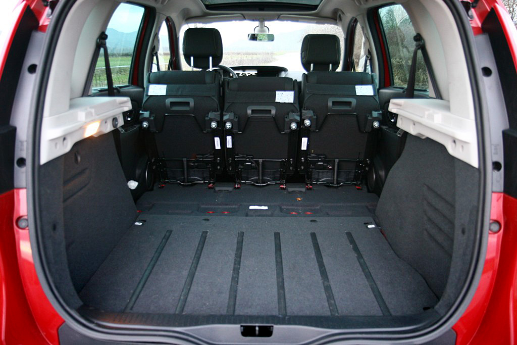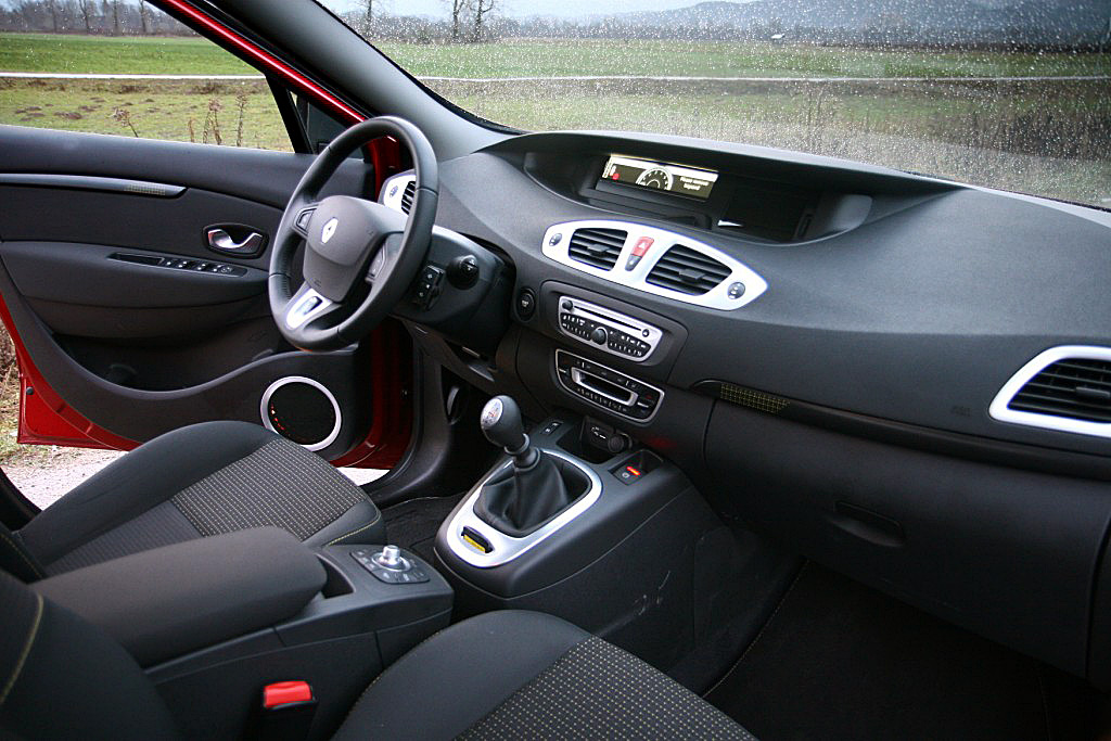 Mamice in očki pozor, scenic v notranjosti ponuja pravo poplavo prostora! Če vaši otroci niso ravno profesionalni košarkarji, sedijo zadaj zelo udobno. Prtljažnik je ogromen in lahko dostopen. Nakladalna površina je nizka in široka ter tako omogoča tudi šibkejšim lahkotno nakladanje nakupljenega živeža, otroškega vozička ali sinove športne opreme. Zadnja vrsta sedežev je popolnoma zložljiva, z nekaj truda tudi povsem odstranljiva, če vas slučajno zamika adrenalinsko športno popoldne ali nakupovalna mrzlica v pohištvenem diskontu. Takrat prtljažnik meri kar 1837 litrov. Omeniti velja le, da so se na testnem vozilu težko zapirala prtljažna vrata. Sicer je vsepovsod polno plastike, ki je na otip in izgled prijetna in nikakor ne razočara. Tudi končno izdelavo lahko pohvalimo. Zaslediti ni niti trohice francoske ležernosti, prej nemška hladna preciznost. Glavna prodajna odlika renaulta scénic je njegova prilagodljivost, kar žal ne moremo z gotovostjo trditi za upravljanje s sistemi v vozilu. Z ukazi na sredinskem naslonu naprimer lahko upravljamo samo navigacijo, ne pa tudi ostalih sistemov, vključno z radiem. Precej bolj enostavno bi bilo povezati upravljanje z vsemi sistemi na enem mestu.