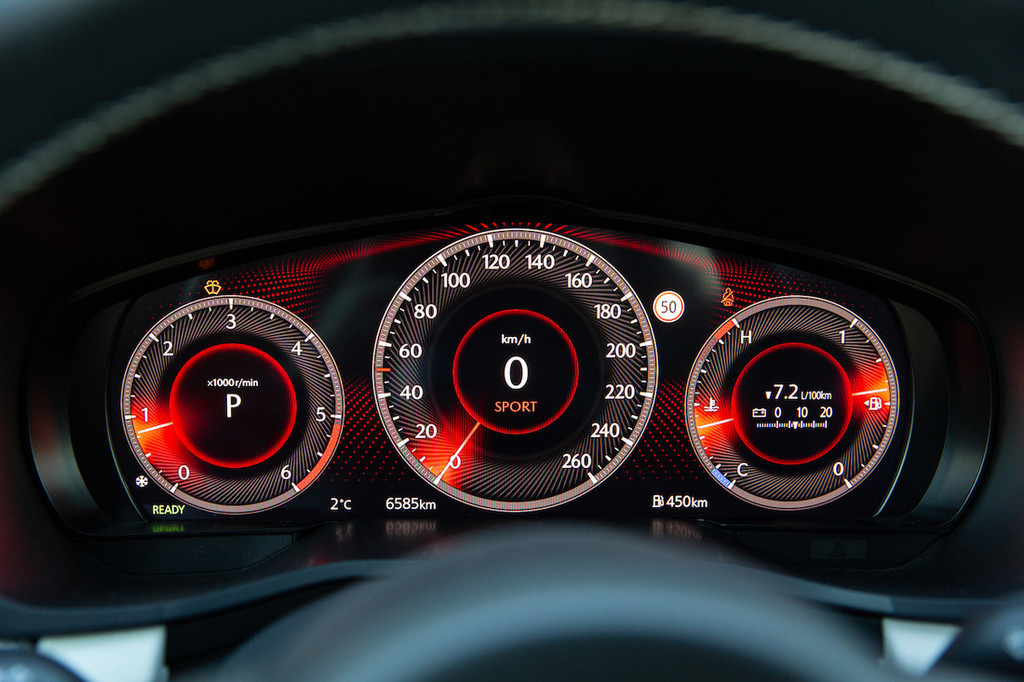 ga lahko samo želite, pa ne le zaradi zmogljivosti, ampak tudi zaradi zmernosti pri porabi. V hladnem zimskem obdobju smo zlahka shajali z nekaj manj kot osmimi litri na 100 prevoženih kilometrov, kar za štirikolesno gnan avtomobil, ki tehta krepko prek dveh ton, res ni veliko. Nekaj zaslug za to ima 24-voltna blaga hibridna podpora z manjšim elektromotorjem z močjo 12,4 kW in navorom 153 Nm, ki energijo črpa iz skromne baterije kapacitete 0,33 kWh.