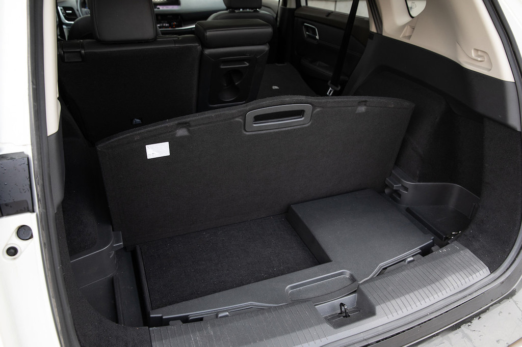 Kot rečeno je X-trail v sprednjem delu kabine praktično enak qashqaiju, a je zgodba proti zadnjemu delu popolnoma drugačna. Ponuja namreč možnost dveh dodatnih sedežev v prtljažnem prostoru, medtem ko je klop v drugi vrsti vzdolžno pomična za kar 22 centimetrov. Če je postavljena na srednji položaj, prtljažnik (brez šestega in sedmega sedeža) meri 575 litrov in je povečljiv na 1396 litrov. Naš testni avtomobil ni bil zamišljen kot 7-sedežnik, kar sicer zahteva 1100 evrov doplačila. Naj