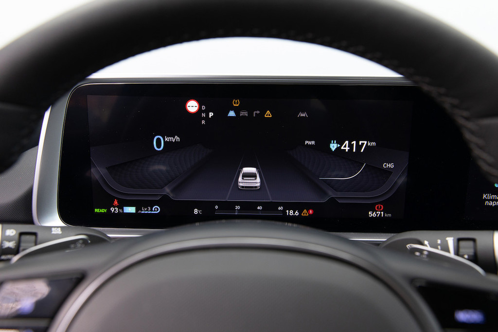 Zunanjost je brez dvoma stvar okusa, o obliki in ureditvi notranjosti pa objektivno težko rečemo kaj slabega. Predvsem sprednji del kabine nas je navdušil s preprostostjo in obenem funkcionalnostjo. Če ste brali naše zapise o sorodnem ioniqu 5, veste, o čem govorimo. Vrh armature ima le en velik element, ki združuje dva zaslona, 31,2-centimetrskega na mestu merilnikov in enako velikega za upravljanje multimedijske naprave. Pod slednjim je vrstica klasičnih stikal z nekaj bližnjicami, medtem