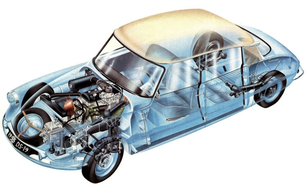 Tekočina pod tlakom je resnična centrala hidravlične energije. Ta zelo izpopolnjena naprava, ki povezuje sklopko, upravljanje zavor, krmilni mehanizem in prestavljanje, poskrbi za v vseh pogledih mehko vožnjo. Po njeni zaslugi je DS zgled udobne vožnje. Leta 1967 je razvojni oddelek stilsko prenovil sprednji del avtomobila DS. To prenovo je spremljala tudi pomembna tehnična inovacija: novi optični bloki so imeli smerne žaromete, ki so se obračali hkrati s kolesi. Leta 1969 je bilo uvedeno še elektronsko vbrizgavanje in avtomobilu DS zagotovilo dodatne zmogljivosti, ki jih je potreboval.
