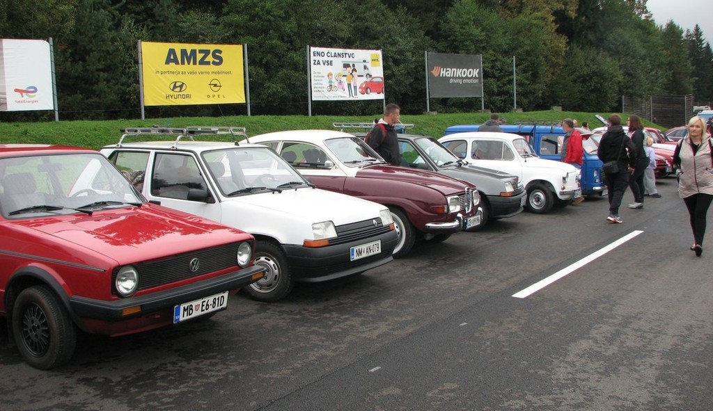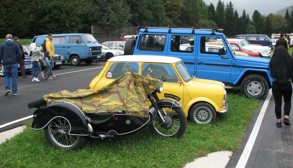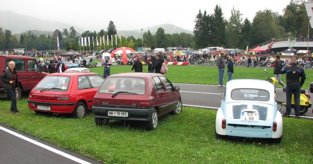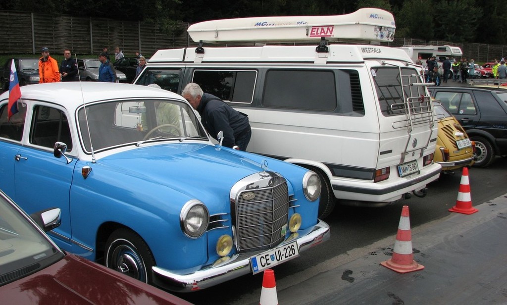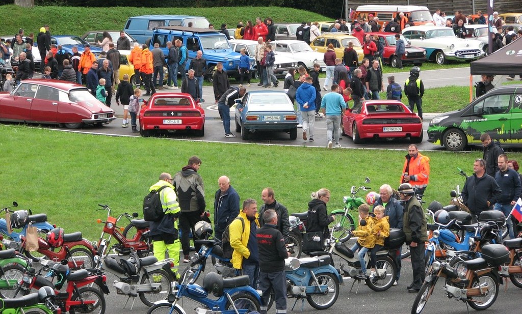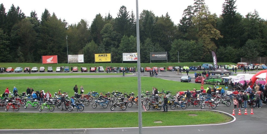 Tomosi pa niso bili edina paša za oči na sobotnem dogodku, ker so si številni obiskovalci lahko ogledali tudi veliko (od 200 do 300 vozil) 4-kolesnih mlado- in starodobnih vozil, med katerimi smo lahko občudovali tudi vozila nekaterih, za nas Slovence, zelo eksotičnih znamk (lep primer tega je odlično ohranjen britanski wolseley 6/90 (bolj razkošni riley pathfinder …) iz Celja, ki je pred tem večino življenja preživel na Švedskem). Žal pa je sobotno 'kislo vreme' nekoliko pokvarilo vzdušje, sploh popoldanski naliv okrog 16. ure, ki je poskrbel za prezgodnji odhod številnih udeležencev tega dobro izvedenega srečanja. Na prejšnjem podobnem dogodku (20. obletnica zveze SVAMZ), ki je bil izpeljan pred petimi leti ob podpori lepega vremena, se je zbralo precej več vozil (približno 1100 …). Številni obiskovalci so si ob tem ogledali tudi bolšji sejem in se udeležili tudi predstavitve knjige z naslovom “SLOVENSKA AVTOMOBILSKA SCENA 80. IN 90. LET”. Veliko pozornosti je požela tudi manjša promocijska razstava mladega slovenskega slikarja (Klemen Banfič), ki je istočasno tudi avtomobilski romantik in diplomirani industrijski oblikovalec. Posledično na njegovih slikah prevladujejo avtomobilski motivi, pri njem lahko za razumno ceno naročite tudi portret vašega starodobnika.