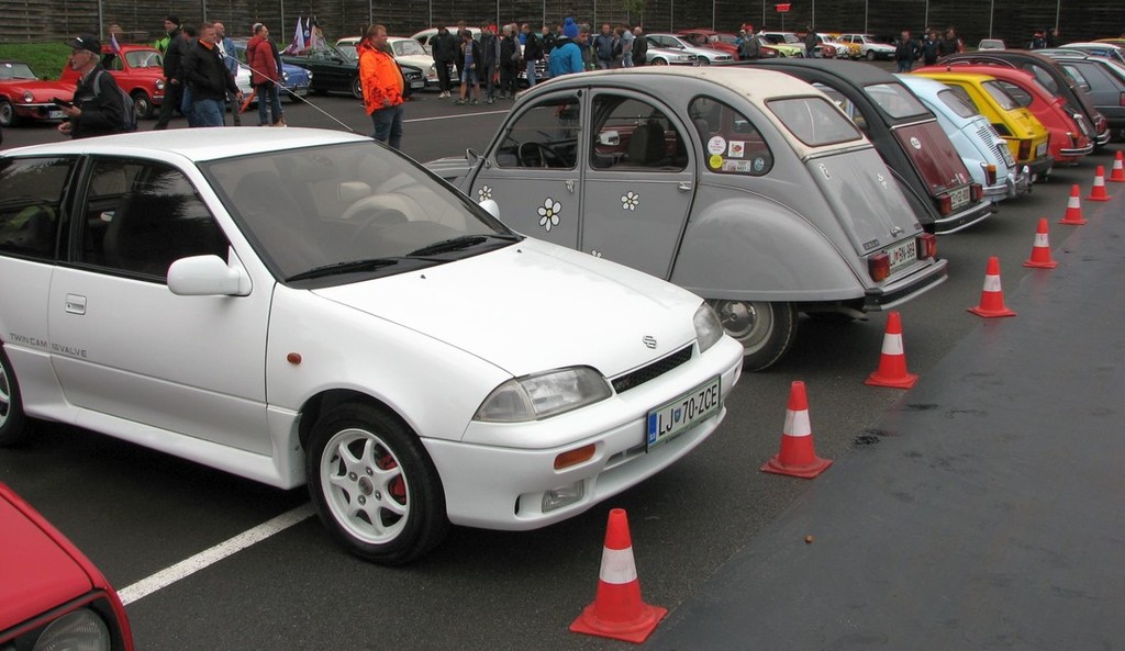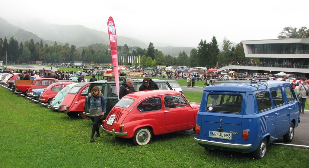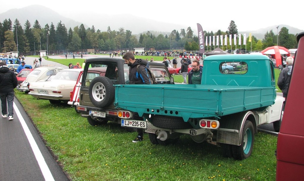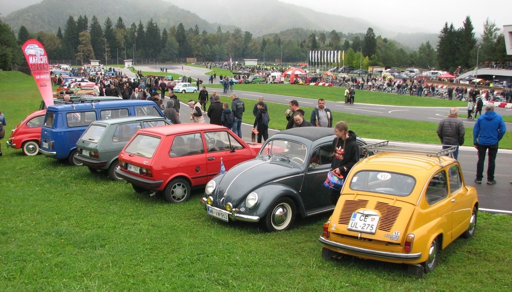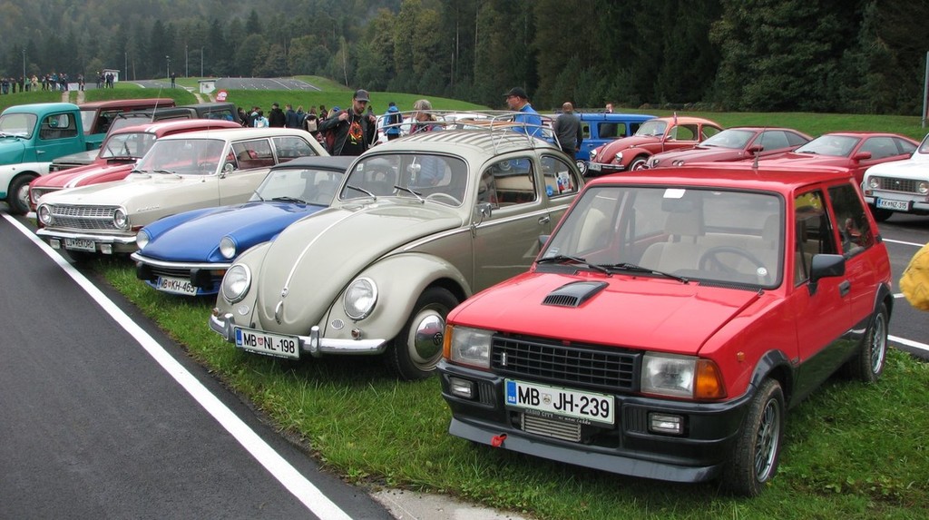 Tomosi pa niso bili edina paša za oči na sobotnem dogodku, ker so si številni obiskovalci lahko ogledali tudi veliko (od 200 do 300 vozil) 4-kolesnih mlado- in starodobnih vozil, med katerimi smo lahko občudovali tudi vozila nekaterih, za nas Slovence, zelo eksotičnih znamk (lep primer tega je odlično ohranjen britanski wolseley 6/90 (bolj razkošni riley pathfinder …) iz Celja, ki je pred tem večino življenja preživel na Švedskem). Žal pa je sobotno 'kislo vreme' nekoliko pokvarilo vzdušje, sploh popoldanski naliv okrog 16. ure, ki je poskrbel za prezgodnji odhod številnih udeležencev tega dobro izvedenega srečanja. Na prejšnjem podobnem dogodku (20. obletnica zveze SVAMZ), ki je bil izpeljan pred petimi leti ob podpori lepega vremena, se je zbralo precej več vozil (približno 1100 …). Številni obiskovalci so si ob tem ogledali tudi bolšji sejem in se udeležili tudi predstavitve knjige z naslovom “SLOVENSKA AVTOMOBILSKA SCENA 80. IN 90. LET”. Veliko pozornosti je požela tudi manjša promocijska razstava mladega slovenskega slikarja (Klemen Banfič), ki je istočasno tudi avtomobilski romantik in diplomirani industrijski oblikovalec. Posledično na njegovih slikah prevladujejo avtomobilski motivi, pri njem lahko za razumno ceno naročite tudi portret vašega starodobnika.