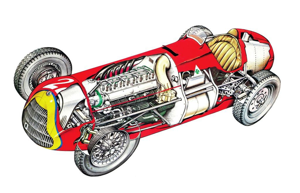 Poznavalci omenjajo od 143 kW (195 KM) iz leta 1938, ko so Italijani zasnovali model alfetta 158, pa vse do razpoložljivih 350 'konj' (257 kW) na uvodni dirki formule 1, ki so to alfo lahko pognali do največ 290 km/h. Na prvem štartnem mestu ('pole position') je stal Giuseppe "Nino" Farina, nečak slavnega italijanskega karoserista in oblikovalca (Battista 'Pinin' Farina), takoj za njim so bile uvrščene preostale tri alfe. Italijanski kvartet je povedel že na samem začetku dirke in ves čas povečeval prednost. O tem priča tudi podatek, ki pravi da je bil prvi zasledovalec (Talbot-Lago, voznik Yves Giraud Cabantous) Alfinih 'štirih mušketirjev' od njih na koncu dirke oddaljen za dva kroga, medtem ko je najbližji maserati omagal na dvainšestdesetem krogu, ker je slavnemu azijskemu aristokratu (tajski princ Bira Siamski), ki ga je upravljal, zmanjkalo pogonskega goriva.