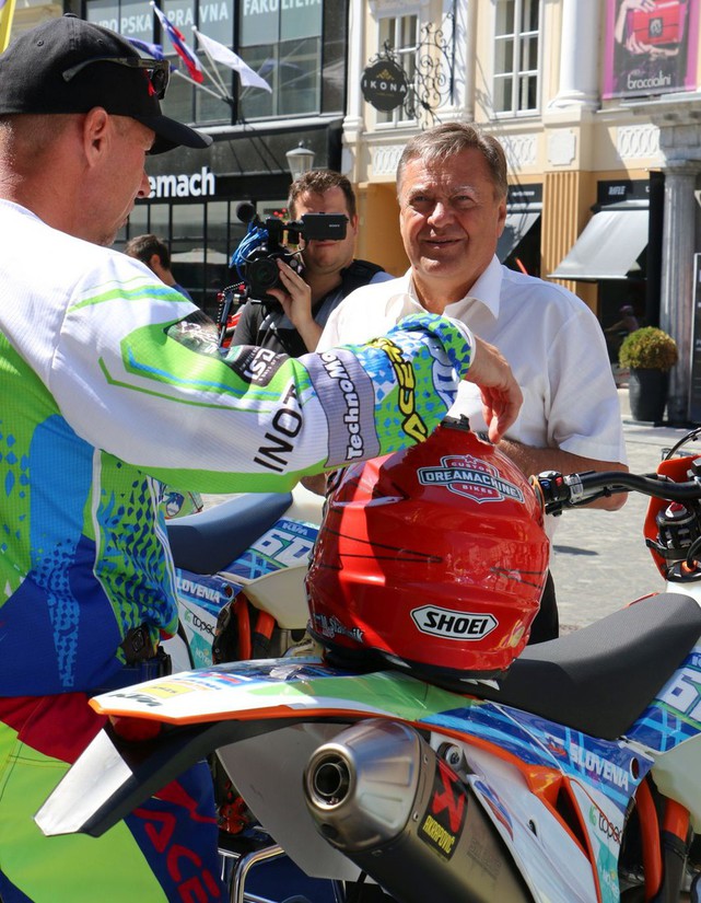 Miran Stanovnik se kot eden od šestih članov prve slovenske enduro reprezentance odpravlja na ISDE, najstarejšo motoristično dirko pod okriljem mednarodne motociklistične zveze. Včeraj jih je v mestni hiši sprejel župan Zoran Jankovič in jim zaželel srečo na Slovaškem.