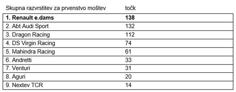 Kljub temu, da je z drugim dirkalnikom prevozil neznanskih 26 krogov je Buemi dodobra izkoristil Renaultov sistem za upravljanje z energijo in v 28. krogu dosegel nov najboljši čas kroga – 57,938 sekunde. Dirko je končal na šestnajstem mestu in s tem izgubil vodstvo v skupni razvrstitvi dirkačev, v kateri ima Lucas di Grassi s 101 točko zdaj pred njim eno točko prednosti.