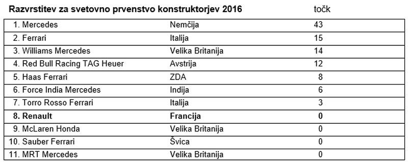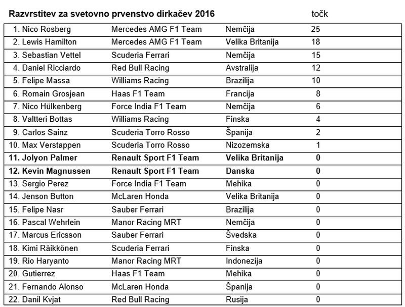 Jolyon Palmer, št. 30, R.S. 16-01: 13. startno mesto, 11. mesto v dirki: “Menim, da je moštvo ta konec tedna opravilo izjemno delo, saj smo se prebili v drugi del kvalifikacij, dirko pa zaključili z enajstim in dvanajstim mestom. To je največ, na kar smo lahko upali. Začetek je dober. Zelo blizu smo bili uvrstitvi za točke, kar je dobra osnova za nadaljnji napredek. Dirka je bila napeta, a zabavna. Po letu dni brez dirkanja sem izjemno užival v tesnih bojih. Krasno je biti spet sredi tekme, še posebno, ker je ta zame potekala precej gladko. Le tako naprej!”