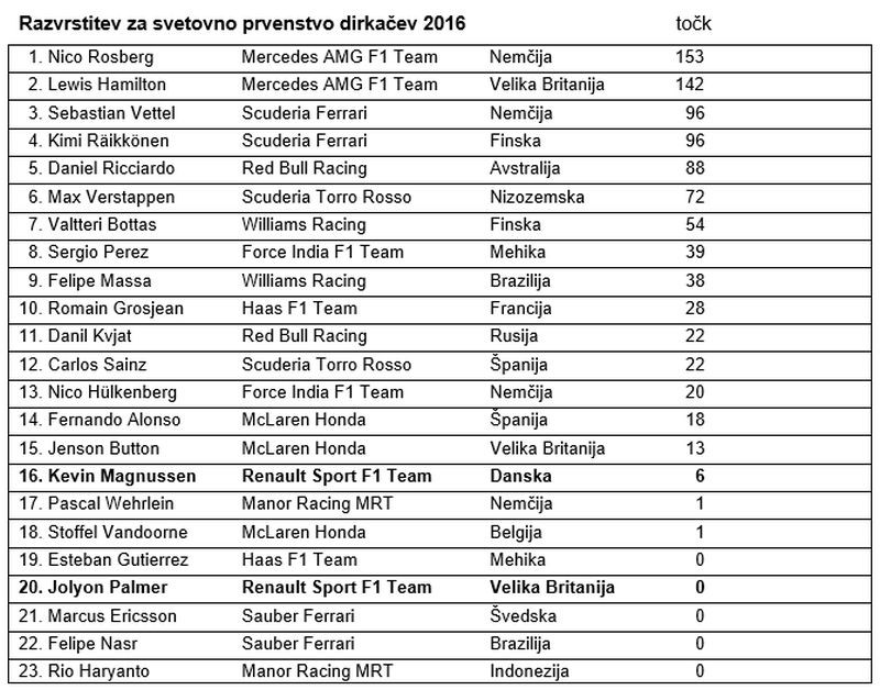 Jolyon Palmer, št. 30, R.S. 16-02: 20. startno mesto, 12. mesto v dirki: “Z dirko sem razmeroma zadovoljen. Z le nekaj malega sreče bi se lahko uvrstili med prvih deset in osvojili kakšno točko. Dirkalnik je deloval dobro, dajal je boljši občutek kot v prejšnji dirki, in zame osebno je bila to najbrž ena najboljših dirk. Če bi morali preiti na mehke pnevmatike takrat, ko je na stezo zapeljal varnostni avtomobil, bi lahko takrat opravili postanek v boksu in potem z istimi pnevmatikami zdržali do cilja ter osvojili točke. V zadnjih nekaj dirkah sem se počutil vedno močnejšega, zato mi zavedanje, kaj bi lahko dosegli danes, vzbuja upe na osvojitev točk v naslednji dirki v Silverstonu.”