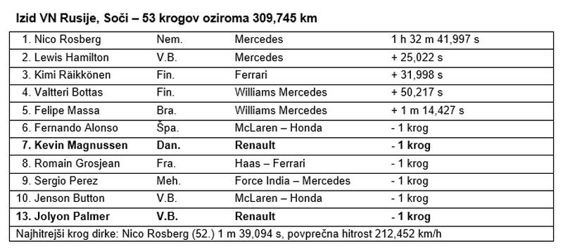 Moštvo Renault Sport Formula One Team je osvojilo prve točke v letošnji sezoni formule 1 zahvaljujoč odločni, navdihnjeni vožnji Kevina Magnussena, ki je v dirki za VN Rusije v Sočiju osvojil sedmo mesto. Jolyon Palmer je dirko končal nedaleč od uvrstitve za točke, na trinajstem mestu, pet mest više od startnega položaja.
