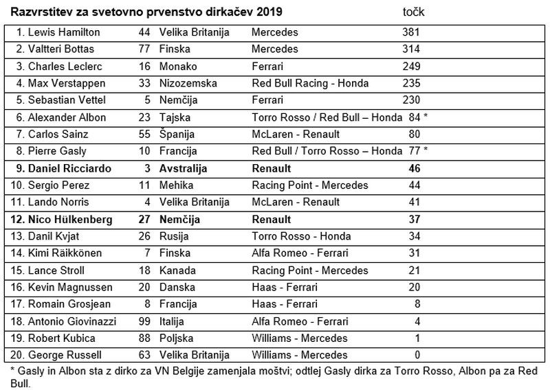 Daniel Ricciardo, št. 3, 9. startno mesto, 6. mesto v dirki: »Letos smo imeli kar nekaj zabavnih dirk in ta je nedvomno ena izmed takšnih. Načrtovali smo en sam postanek in videti je bilo, da se nam bodo ostali s strategijo dveh postankov na koncu približali, kar je v vse skupaj vneslo nekaj živčne napetosti. Dosegli smo naš cilj, da premagamo oba McLarena, kar nam vsekakor godi. Naša dirka je bila dobra in pokazali smo solidno hitrost. Užival sem v boju z Landom (Norrisom), ko sem ga na začetku nekajkrat prehitel in on mene nazaj, proti koncu dirke pa je spet pritiskal name. Vendar smo ubranili šesto mesto, kar je moštvu skupaj z Nicovo uvrstitvijo prineslo lepo število točk.«