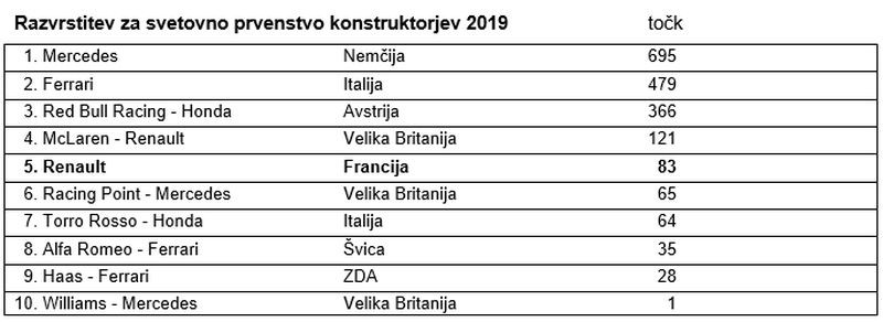 Cyril Abiteboul, generalni direktor Renault Sport Racing: »Najprej moramo potrditi, da je bila dirka v naši skupini spet enkrat izvrstna, z zelo odprtimi in vznemirljivimi strateškimi možnostmi za vse. Menim, da sta naša dirkača in celotno moštvo v dirki uživali. Daniel je speljal izvrstno in bil eden redkih dirkačev, ki so s strategijo enega postanka dirko tudi uspešno zaključili. Ko je Norris zavil v boks, smo se odločili za agresivno izbiro in ostali na stezi, da bi tako premagali oba McLarena, kar je tudi delovalo. Za Nica je pred dirko dogovorjena strategija predvidela tudi en postanek, a smo jo še pravočasno spremenili in Nico je ohranil hladno kri, ko je nazadoval. Proti koncu je na mehkih pnevmatikah lahko spet napredoval zahvaljujoč preudarnemu upravljanju na začetku dirke. Danes smo videli krasno predstavo, takšno formulo 1 kot jo imamo radi, z veliko akcije na stezi. Zadovoljni smo z našim izkupičkom v ameriškem delu sezone doslej in lepo bero točk, ki smo jih osvojili v zadnjih dveh dirkah. Rad bi tudi čestital Lewisu Hamiltonu za njegov šesti naslov svetovnega prvaka. Posebno navdihujoče je gledati, kako on in njegovo moštvo dajejo vtis, da je vse lahko, čeprav je ta šport izredno zahteven do vsakogar, ki sodeluje v njem.«