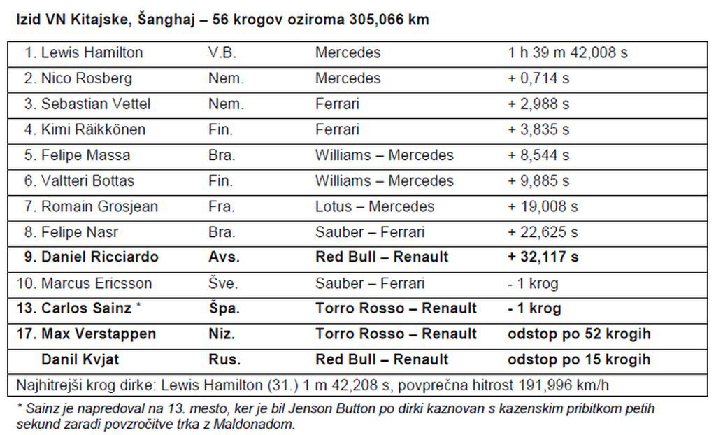 - Njegov moštveni tovariš Danil Kvjat je odstopil v 16. krogu zaradi okvare motorja.
