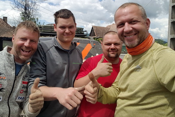Takoj smo naredili načrt, kako bomo sestavili poškodovani del našega jeepa z delom land roverja, le še varilec nam je manjkal. Z drugim jeepom smo se odpravili v najbližjo vas in poiskali domačina, ki je imel varilni aparat iz daljne preteklosti. S toliko več preproste iznajdljivosti in ob pomoči govorice rok smo sestavili novi rezervni del ter spravili okvarjeni avtomobil spet v pogon. Ker pa smo vedeli, da je to le kratkoročna rešitev, smo po telefonu poklicali prijatelje v Slovenijo, kjer so nas ves čas spremljali po elektronskih medijih. Padla je drastična odločitev: takoj naj gredo na naša dvorišča in v garaže poiskati potrebne in še druge potencialno kvarljive nadomestne dele ter se usedejo v avto in odpravijo na pot iz Slovenije v Romunijo.