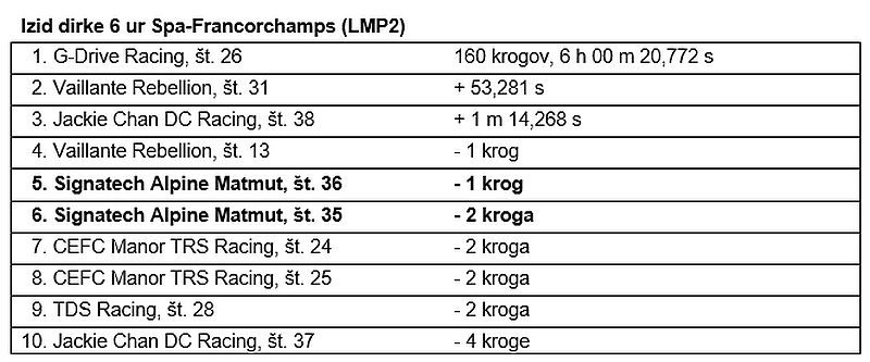 - Druga dirka letošnjega vzdržljivostnega prvenstva FIA WEC je bila v soboto na slovitem belgijskem dirkališču Spa-Francorchamps.