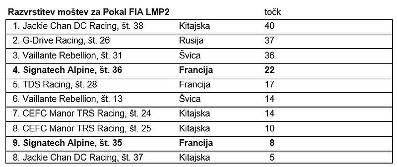 - Dirka je bila za oba dirkalnika Alpine A470 zelo težka, končala pa se je s petim mestom za posadko s številko 36 (Dumas, Menezes, Rao) in šestim mestom za številko s številko 35 (Panciatici, Ragues, Negrão).