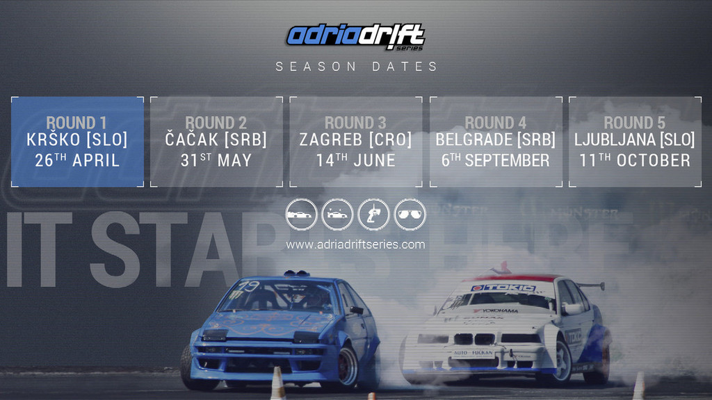 V Krškem bodo 26. aprila zarohneli drift dirkalniki, ki se bodo dokazovali v srditih bojih "na počez". Poleg tega bodo v vsem svojem lesku zasijali tudi tako ali drugače predelani avtomobili v že dodobra poznanem Show'n'Shine tekmovanju, prav tako pa se bo vzporedno odvijala tudi avto modelarska 1:10 pomanjšana Adria Drift RC Serija.