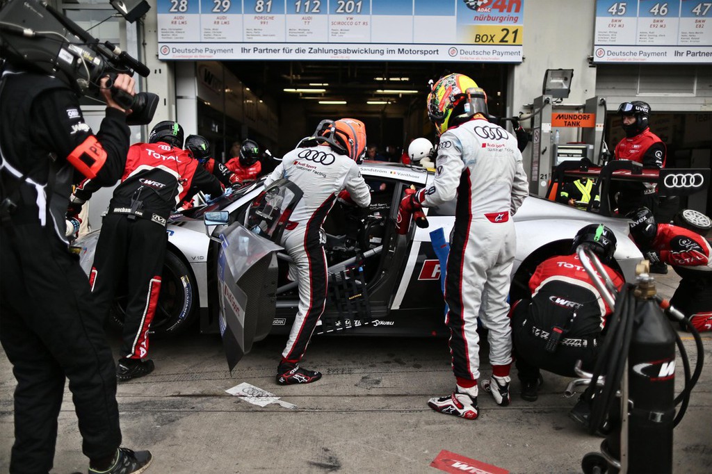 Boj za zmago na maratonu v nemški pokrajini Eifel že dolgo ni bil tako napet. V 24 urah se je vodstvo zamenjalo 35-krat – to je rekord na prireditvi, ki poteka od leta 1970. Glede na zaporedje postankov v boksih sta se od sredine dirke na prvem mestu izmenjevala R8 LMS s štartno številko 28 in njegov najmočnejši tekmec. Na koncu je z osredotočenim nastopom svojih voznikov in odličnim timskim delom prevladala belgijska ekipa Audi. Ekipa pod vodstvom Vincenta Vossa in vsi štirje dirkači so se veselili svoje prve zmage na tem klasičnem tekmovanju.